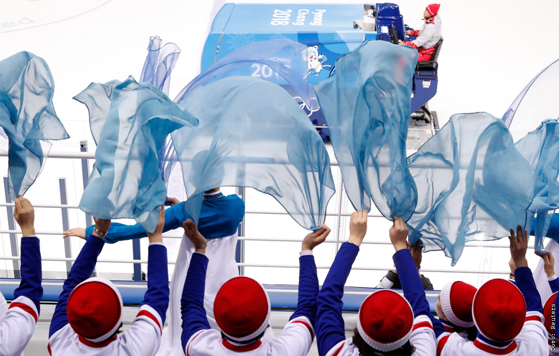 Группа поддержки сборной КНДР уже в первые дни Олимпиады в Пхенчхане оказалась в центре внимания. Девушки-чирлидеры, которых специально отобрали власти Северной Кореи, активно поддерживают своих спортсменов аплодисментами, песнями и зажигательными танцами. Впрочем, атлетам из КНДР это пока не особо помогло: к настоящему моменту они не завоевали ни одной медали.
