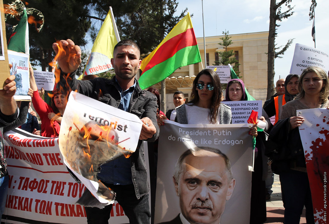 Акция курдов против турецкой военной операции "Оливковая ветвь" у здания посольства РФ в Никосии
