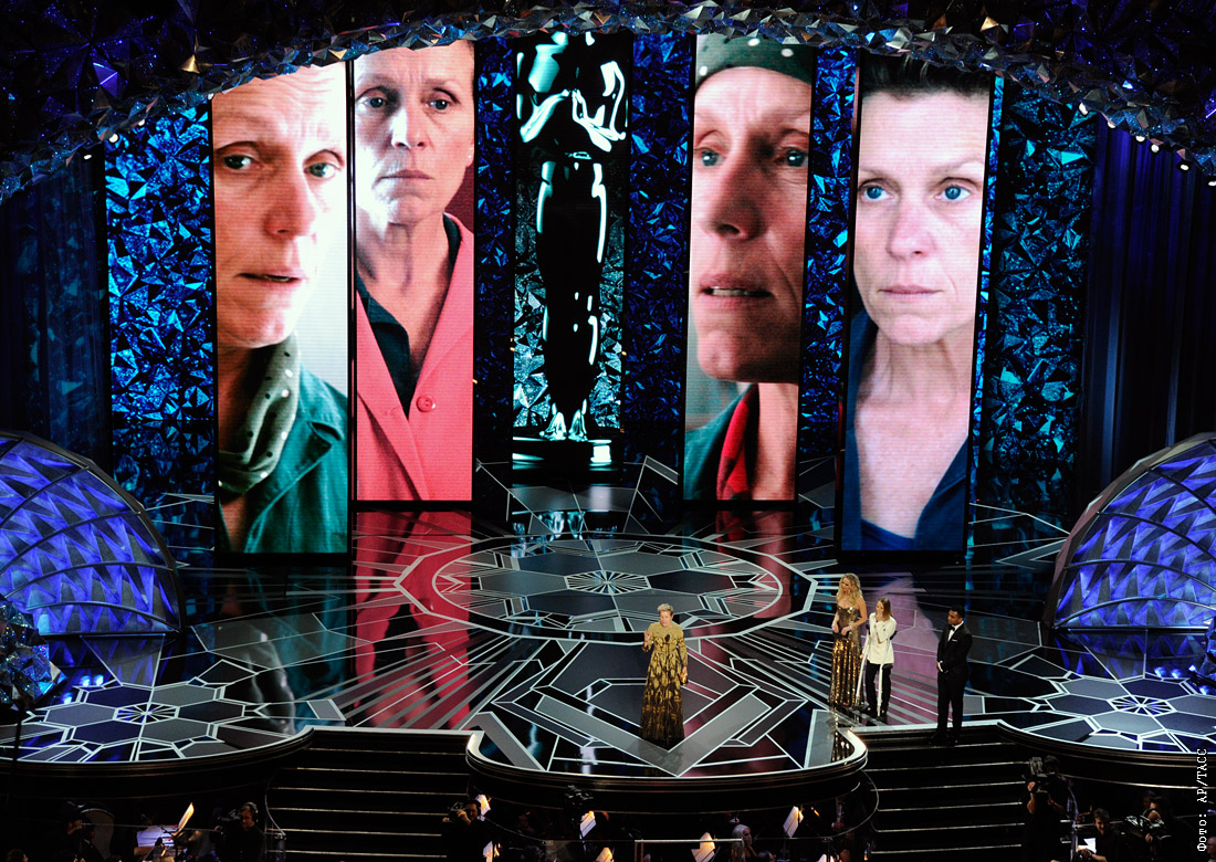 Актриса Фрэнсис Макдорманд (в центре), победившая в номинации "Лучшая актриса" за роль в фильме "Три билборда на границе Эббинга, Миссури"