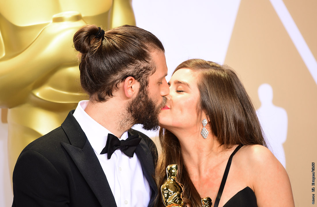 Актеры Крис Овертон и Рэйчел Шентон, победившие в номинации "Лучший игровой короткометражный фильм" за работу в фильме "Немое дитя"