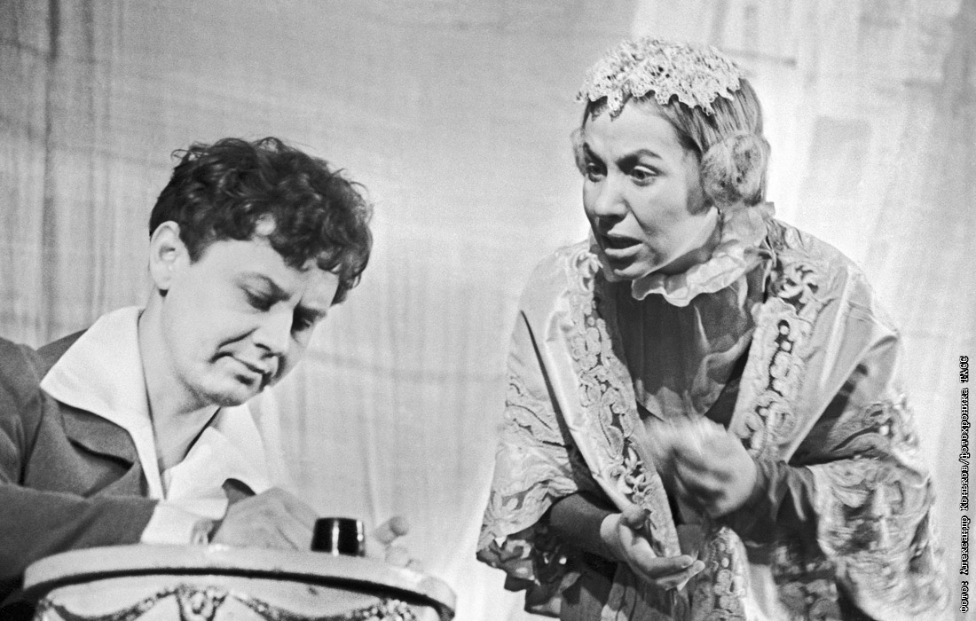 Спектакль "Обыкновенная история" на сцене театра "Современник". Олег Табаков и Галина Соколова. 1966 год.
