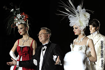 Дизайнер Вячеслав Зайцев (в центре) после показа своей коллекции сезона весна-лето 2010 в рамках российской недели моды "Russian Fashion Week"