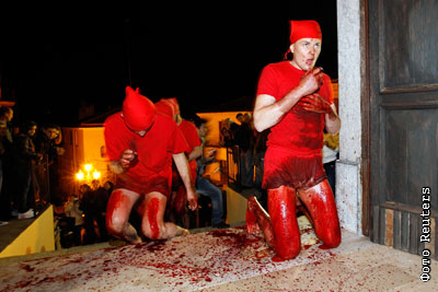 Представители католического ордена кающихся грешников на юге Италии истязают себя осколками битого стекла и передвигаются по улицам города от церкви до церкви, напоминая людям о страданиях Христа. Традиция ведет начало с XIII века