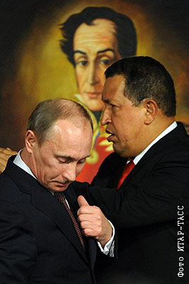 Премьер-министр России Владимир Путин и президент Венесуэлы Уго Чавес на церемонии подписания российско-венесуэльских соглашений