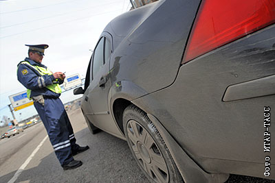 Сотрудник ГИБДД во время проведения акции "Чистый автомобиль", в ходе которой усилен контроль над грязными автомобилями с нечитаемыми номерными знаками