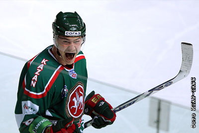 Игрок "Ак Барса" Евгений Медведев, забивший гол в матче полуфинала чемпионата КХЛ: "Ак Барс" (Казань) - "Салават Юлаев" (Уфа) – 2:4
