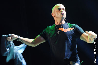 Итальянский певец Эрос Рамазотти во время выступления в СК "Олимпийский"