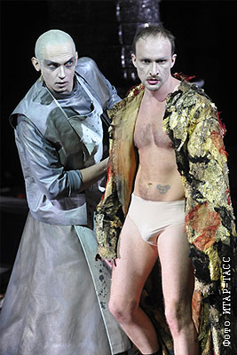 Владимир Мороз в роли Тигелина и Андрей Попов в роли Нерона (слева направо) в сцене из оперы композитора Николая Каретникова "Мистерия апостола Павла" в Мариинском театре