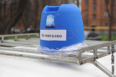 Имитация спецсигнала на крыше автомобиля участника акции против использования чиновниками мигалок у ОВД "Дорогомилово". Акция была организована Федерацией автомобилистов России