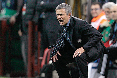 Тренер "Интера" Жозе Моуриньо во врмея матча его команды с "Барселоной"