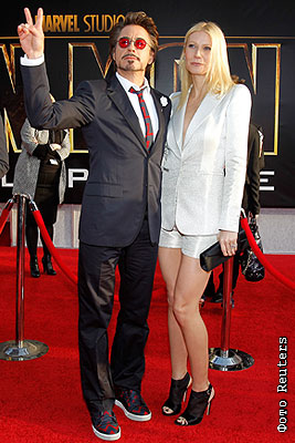 Актеры Роберт Дауни мл. и Гвинет Пэлтроу на премьере фильма "Железный человек 2" в Голливуде