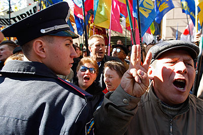 Столкновение сотрудников милиции с участниками акции протеста оппозиции против ратификации Соглашения о продлении срока пребывания Черноморского флота РФ в Крыму