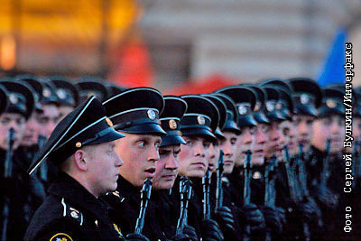 Участники военного парада в часть 65-й годовщины Победы в Великой Отечественной войне