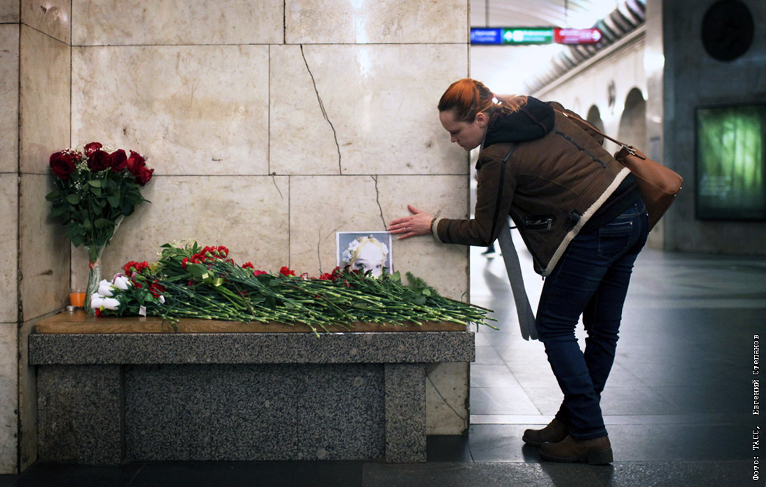 В Санкт-Петербурге проходят акции памяти жертв теракта в метро. Ровно год назад в результате взрыва самодельной бомбы в вагоне поезда петербургского метрополитена погибли 16 человек, в том числе террорист, более 50 получили ранения.