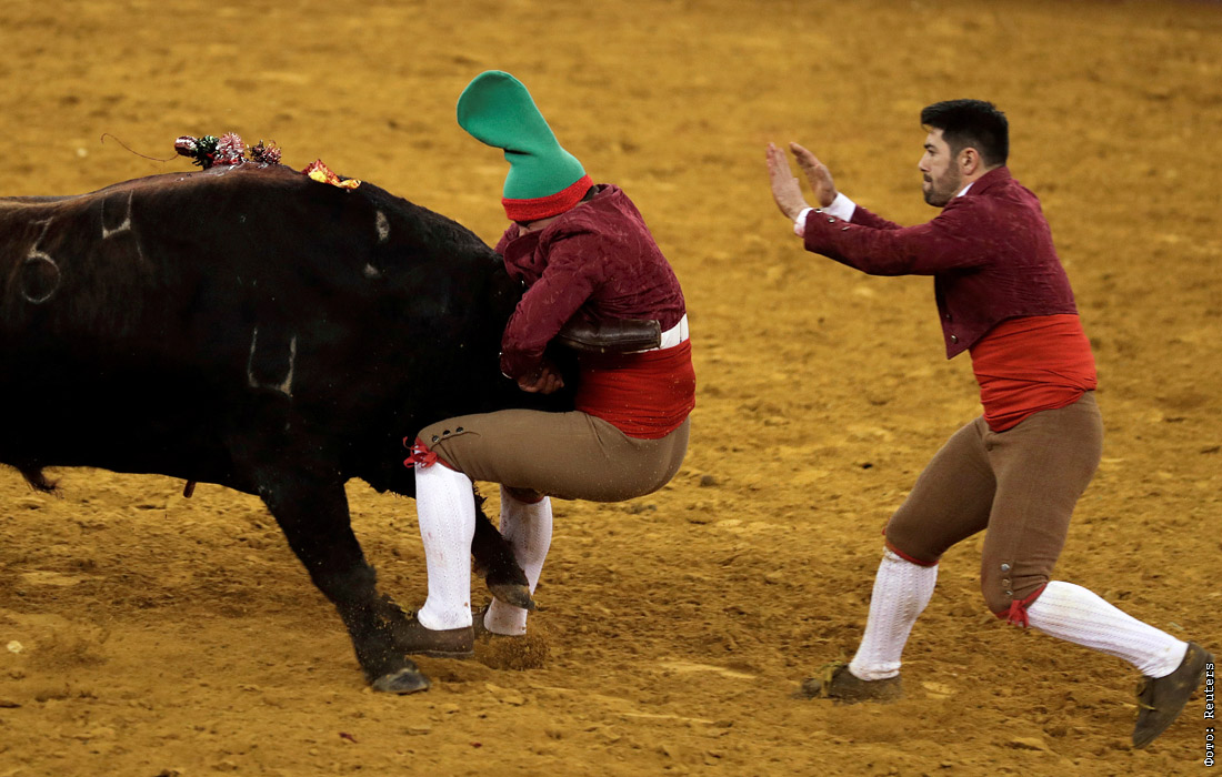 Команда форкадос во время боя с быком на арене Campo Pequeno в Лиссабоне
