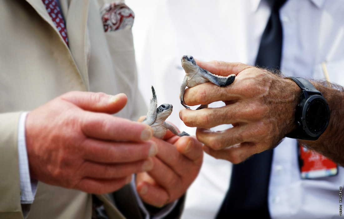 Британский принц Чарльз ( на фото слева) в ходе визита в Австралию познакомился с юными обитателями острова Леди-Эллиот - зелеными морскими черепашками