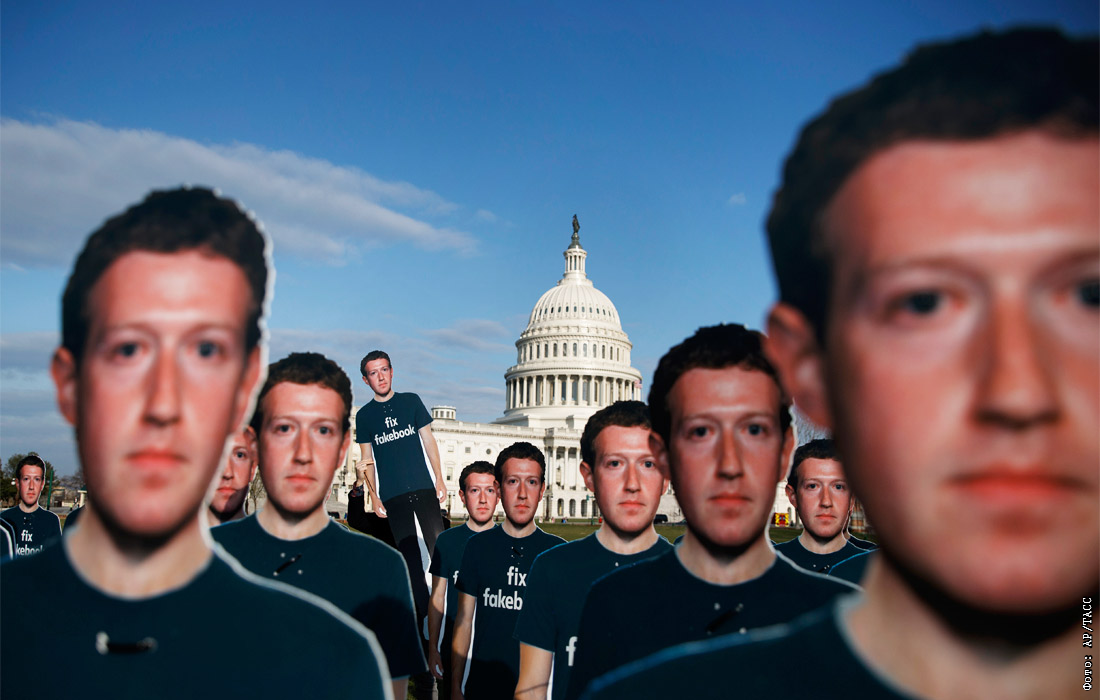 Перед зданием Конгресса США в Вашингтоне появились сотни фигур с изображением основателя Facebook Марка Цукерберга накануне его слушаний о защите персональных данных