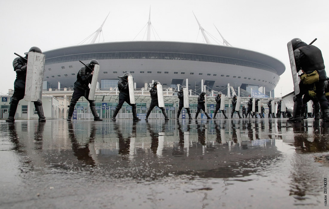 Сотрудники правоохранительных органов провели тренировку у стадиона "Санкт-Петербург" в преддверии чемпионата мира по футболу 2018 года