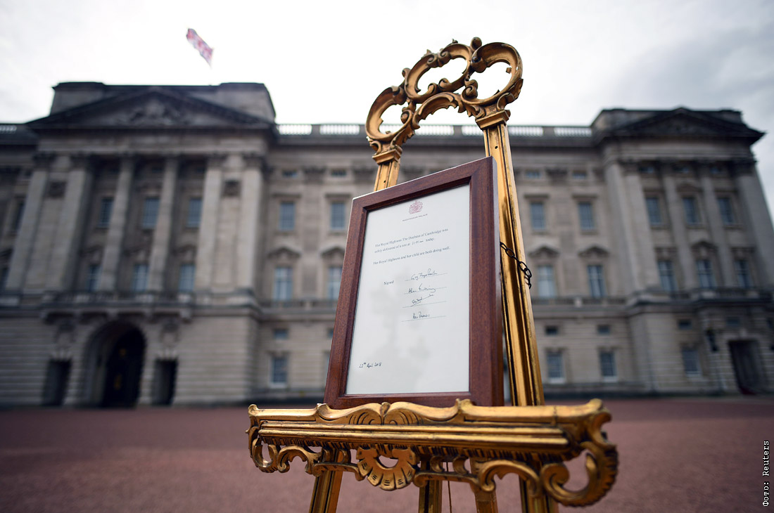 Официальное объявление о рождении у герцогини Кембриджской мальчика выставлено у Букингемского дворца