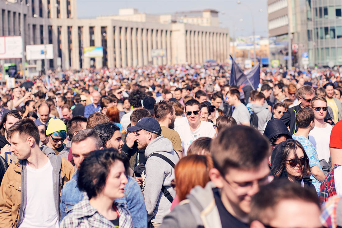 Пространство между рамками металлоискателей, расположенными в начале проспекта, и сценой, установленной на пересечении с Садовым кольцом, было полностью заполнено людьми
