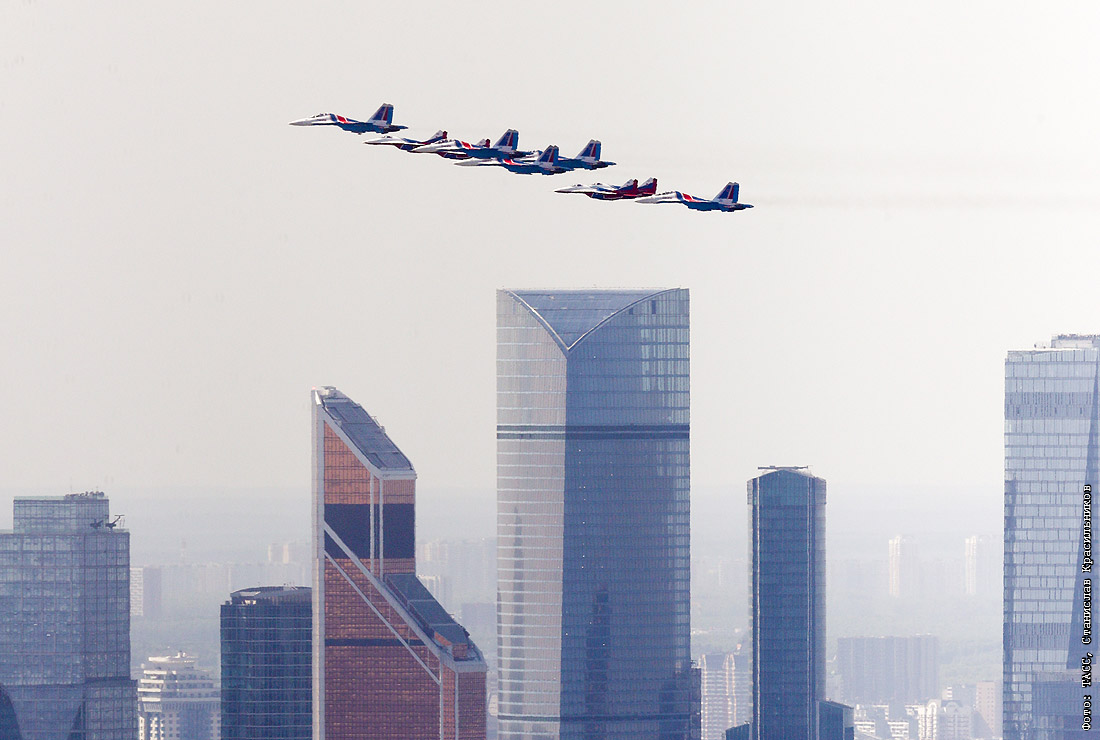 Многоцелевые истребители Су-30СМ пилотажной группы "Русские Витязи" и МиГ-29 пилотажной группы "Стрижи"