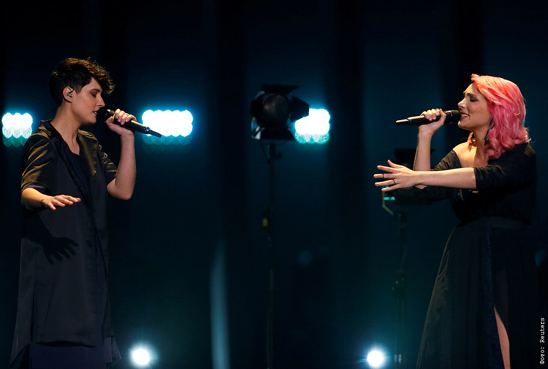 Страна-хозяйка "Евровидения-2018" Португалия заняла 26-е место - На фото (справа) представительница этой страны Клаудия Пашкоал с песней "O Jardim" ("Сад")