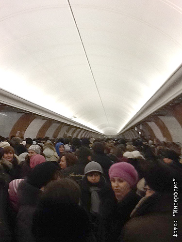 Митингующие прибывают на митинг на Поклонной горе на автобусах и на общественном транспорте.