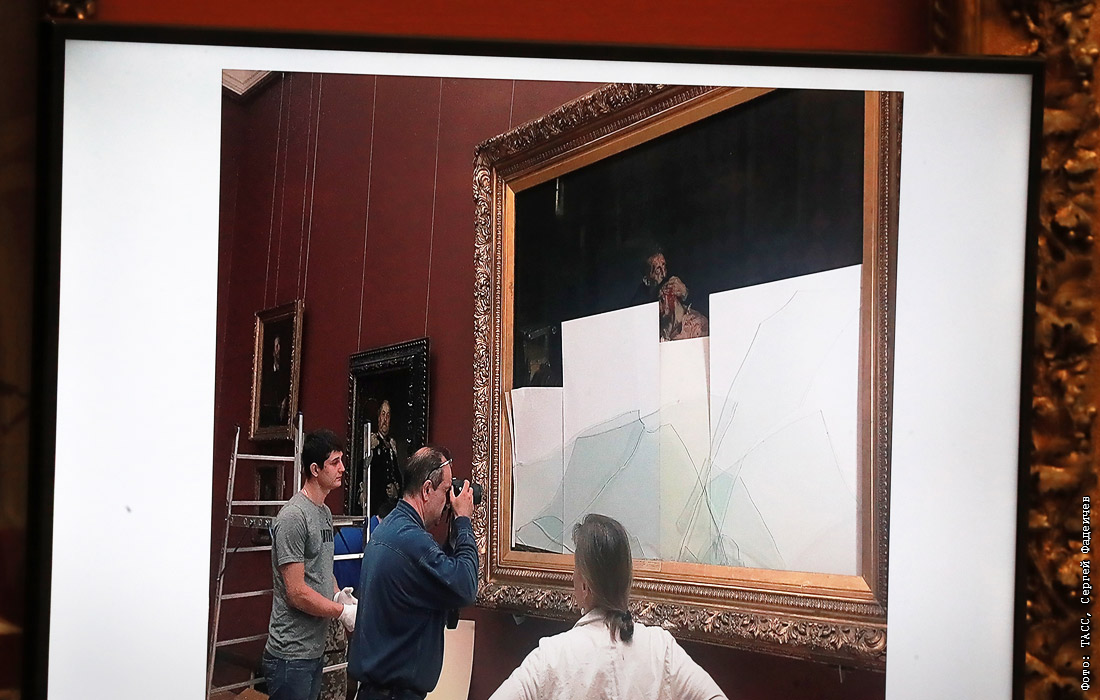 Вечером в пятницу, 25 мая, в Третьяковской галерее в Москве один из посетителей металлическим столбиком ограждения повредил картину Ильи Репина "Иван Грозный и сын его Иван". Холст был прорван в трех местах в центральной части работы на фигуре царевича. Полиция задержала 37-летнего мужчину, повредившего полотно. Ущерб от его действий оценивается более чем в 500 тысяч рублей. После реставрации картину Ильи Репина будут выставлять в Третьяковской галерее в специальном бронированном стеклянном кейсе.