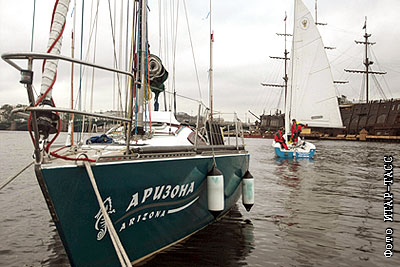 Участники регаты "Паруса Белых ночей" на реке Неве