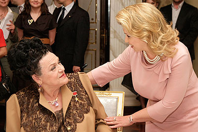 Супруга президента Светлана Медведева поздравила певицу Людмилу Зыкину с восьмидесятилетием на торжественном приеме в Кремле