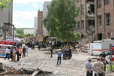 На месте обрушения перекрытий между этажами в четырехэтажном офисном здании, где под завалами погибли люди