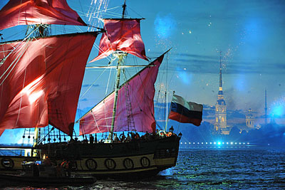 На общегородском празднике выпускников школ "Алые паруса" на Неве