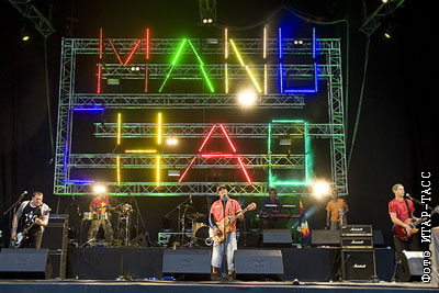 Группа "Manu Chao" во время своего концерта на сцене Зеленого театра в Парке Горького в столице