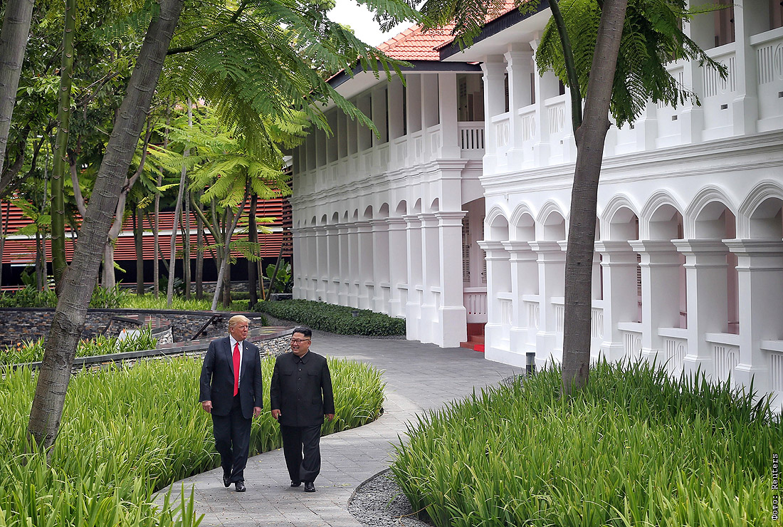 12 июня в отеле "Капелла" на сингапурском острове Сентоса состоялась первая встреча президента США Дональда Трампа и лидера Северной Кореи Ким Чен Ына. Официальные переговоры в расширенном составе продлились почти два часа, перед ними состоялась историческая встреча лидеров тет-а-тет, которая продолжалась около 35 минут. По итогам переговоров лидеры обеих стран подписали документ.