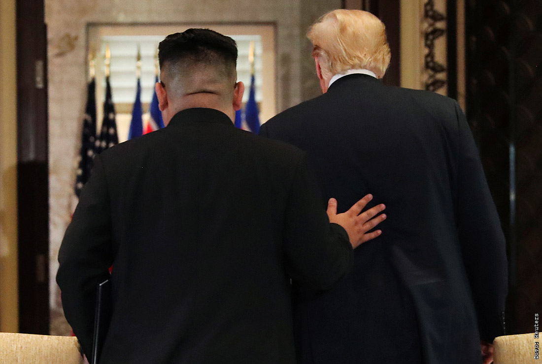 12 июня в отеле "Капелла" на сингапурском острове Сентоса состоялась первая встреча президента США Дональда Трампа и лидера Северной Кореи Ким Чен Ына. Официальные переговоры в расширенном составе продлились почти два часа, перед ними состоялась историческая встреча лидеров тет-а-тет, которая продолжалась около 35 минут. По итогам переговоров лидеры обеих стран подписали документ.