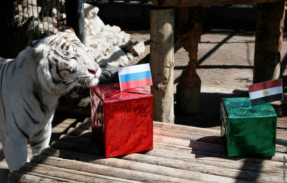 Бенгальский белый тигр Хан из зоопарка Красноярска верит в победу сборной России над Египтом. Команды встретятся на поле 19 июня в Санкт-Петербурге.