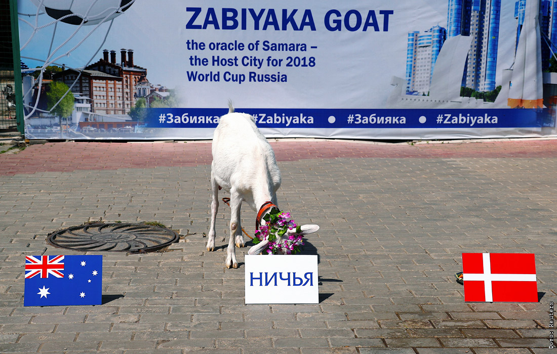 В Самаре коза Забияка предсказала результат матча между сборными Дании и Австралии. Встреча пройдет 21 июня на стадионе "Самара Арена".
