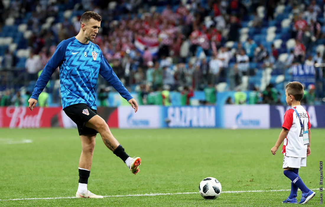 Игрок сборной Хорватии Иван Перишич с сыном после матча между Аргентиной и Хорватией