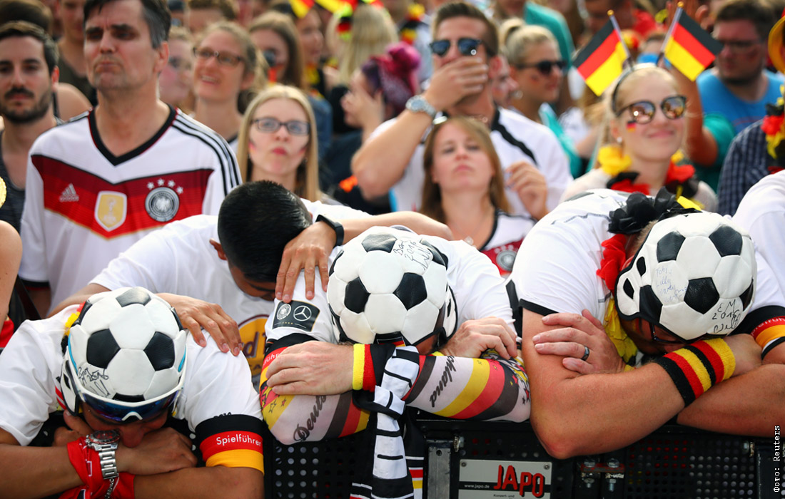 Болельщики сборной Германии после поражения немцев в матче с Южной Кореей и вылета команды из турнира