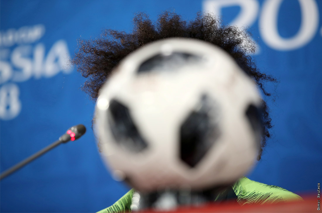 Бразильский футболист Марсело во время пресс-конференции в Ростове-на-Дону