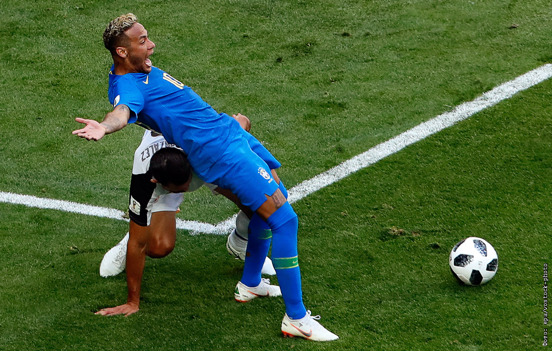 Бразильский футболист Неймар и защитник сборной Коста-Рики Джанкарло Гонсалес
