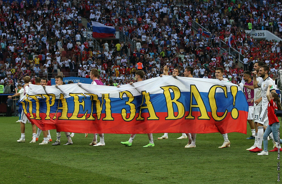Российская команда победила Испанию в серии пенальти в матче 1/8 финала домашнего ЧМ по футболу. Основное и дополнительное время матча закончилось вничью 1:1. Игорь Акинфеев отразил два пенальти в серии послематчевых одиннадцатиметровых.