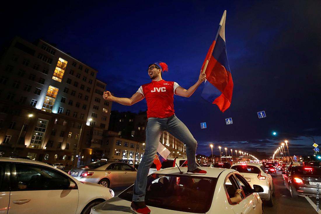 "Интерфакс" представляет подборку снимков о том, как победу сборной над Испанией праздновали в разных городах России
