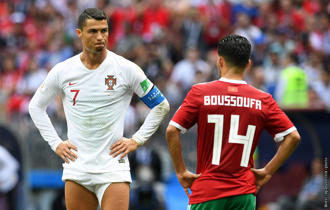 Форвард сборной Португалии Криштиану Роналду в матче группового этапа чемпионата мира по футболу между сборными Португалии и Марокко