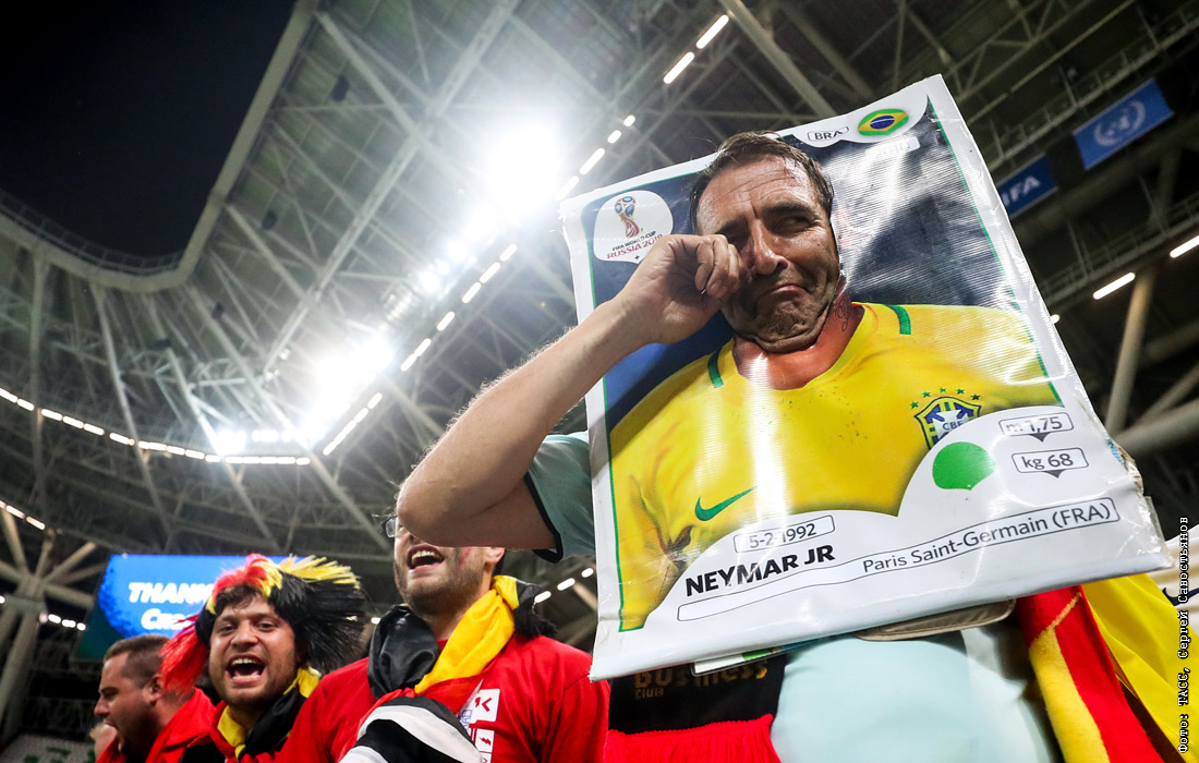 Болельщики сборной Бельгии радуются победе в матче 1/4 финала над Бразилией (2:1)