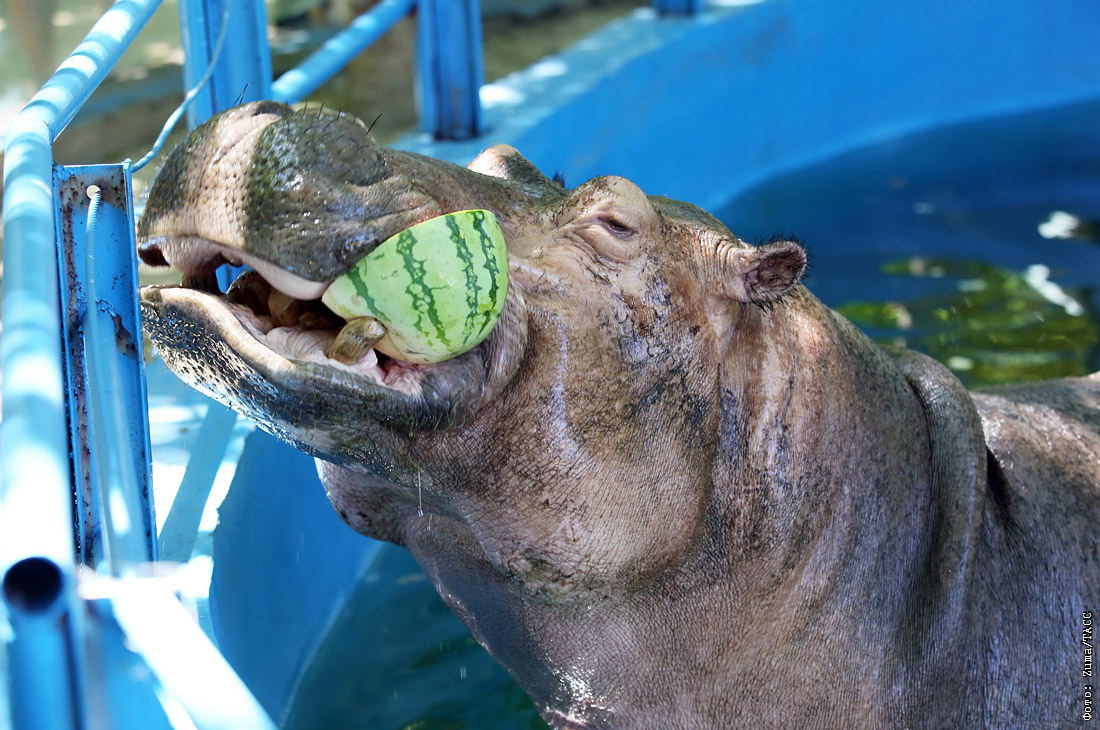 В зоопарках Китая животные спасаются от жары холодными арбузами