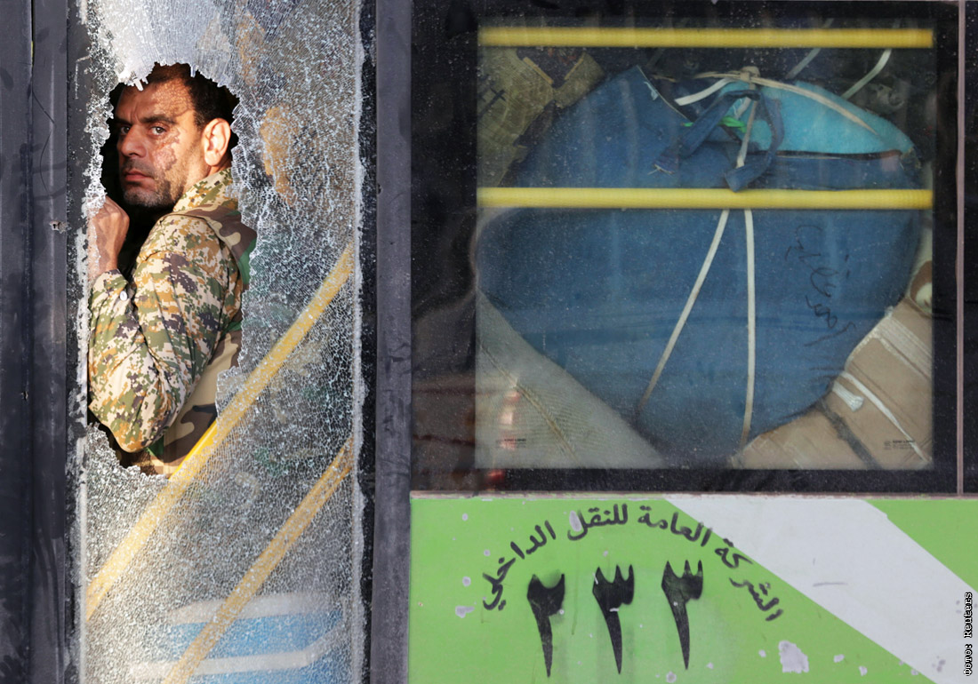 Солдат Сирийской армии во время эвакуации из деревень Аль-Фуа и Кефрая
