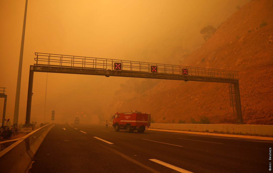Дым от пожаров накрыл столицу и парализовал движение на трассах, связывающих Пелопоннесский полуостров с материком