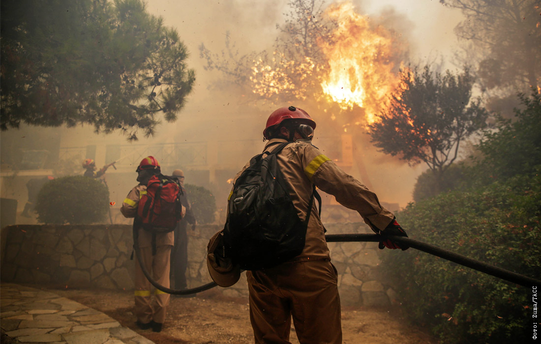 Два крупных пожара бушуют в западном и восточном пригородах Афин. Горят сосновые леса, огонь быстро распространяется благодаря сильному ветру; его скорость достигает 80 км в час. По меньшей мере 50 человек стали жертвами пожаров, более ста человек получили ожоги и травмы.