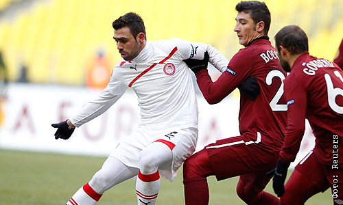 "Рубин" проиграл "Олимпиакосу" в первом матче 1/16 финала Лиги Европы.